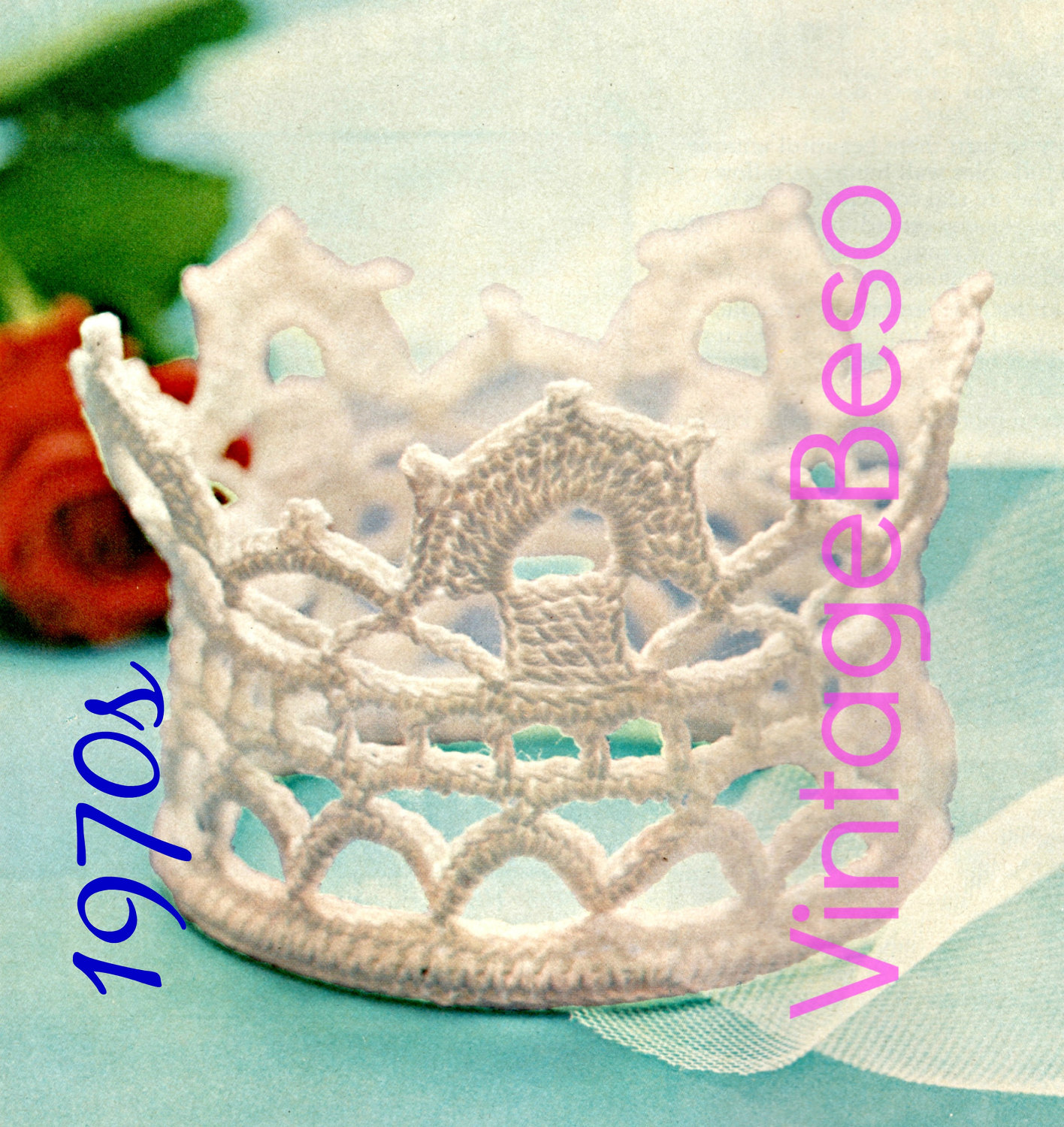 TO MAKE: Retro 1970s Tiara "cupcake size" - CROCHET A TIARA FOR THE BRIDE! "cupcake size"