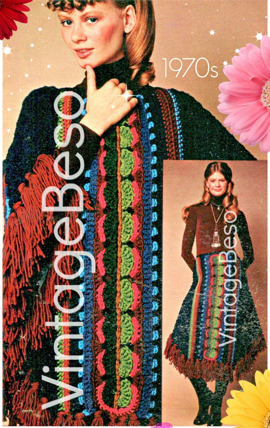 TO MAKE: Retro 1970s Skirt/Poncho + Exclusive Supplemental Gift especially for this RARE and HARD TO FIND Pattern ---> digitally restored/enhanced is now in EASY TO READ LARGE PRINT.