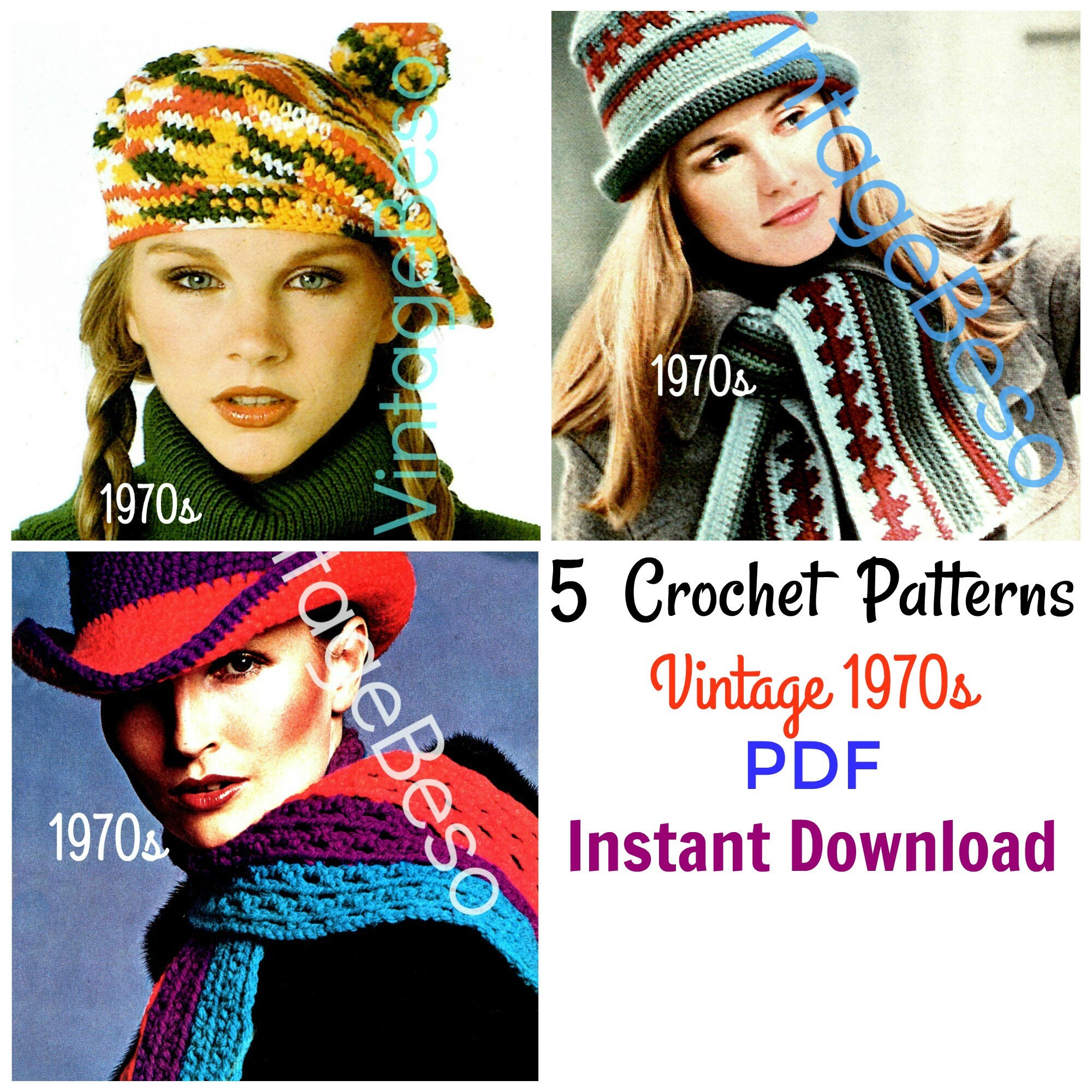TO MAKE: Retro CROCHET Pattern TO MAKE 5 CROCHET PATTERNS --- see pics for pattern info. ---> digitally restored/enhanced is now in EASY TO READ LARGE PRINT.