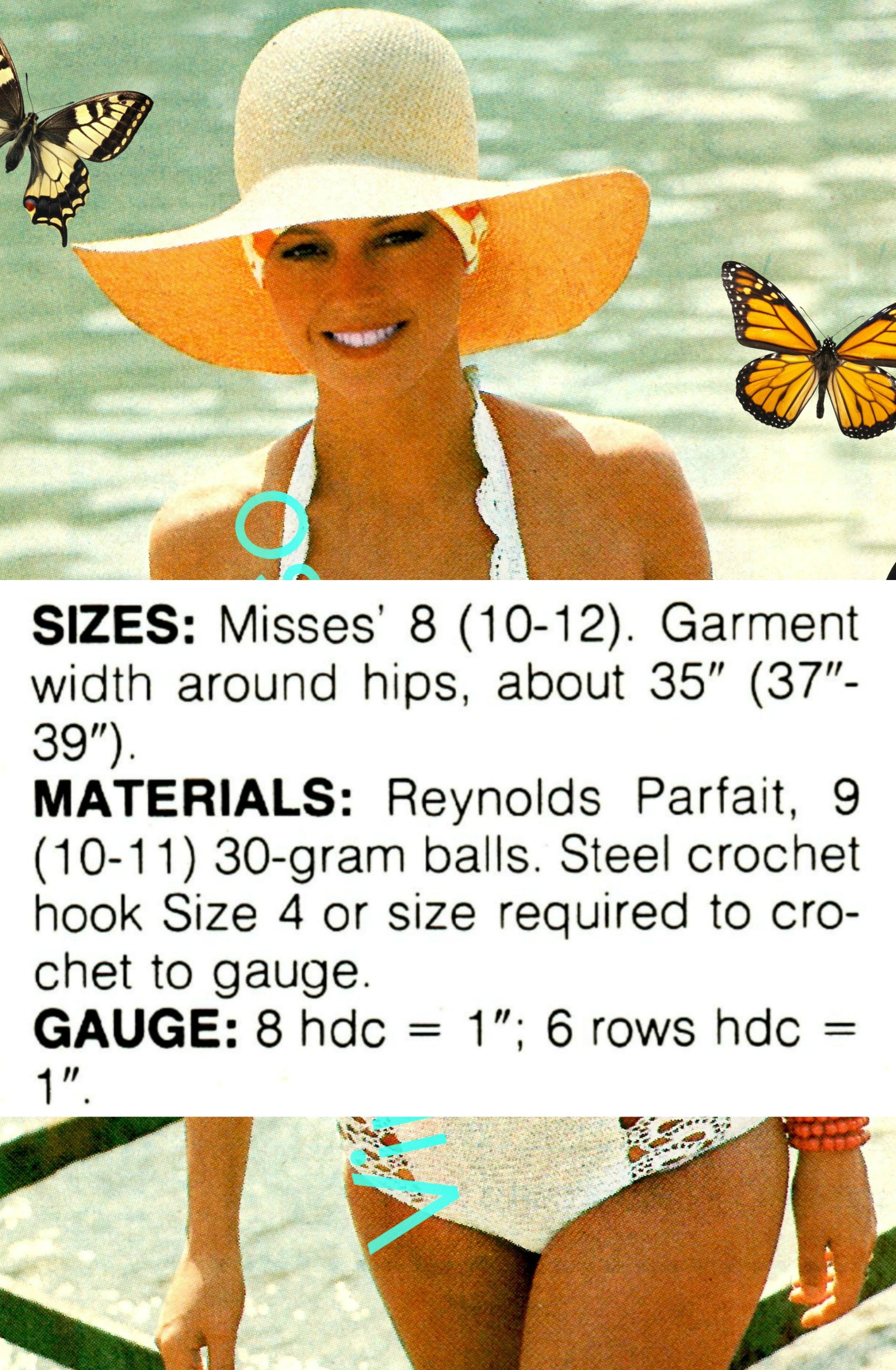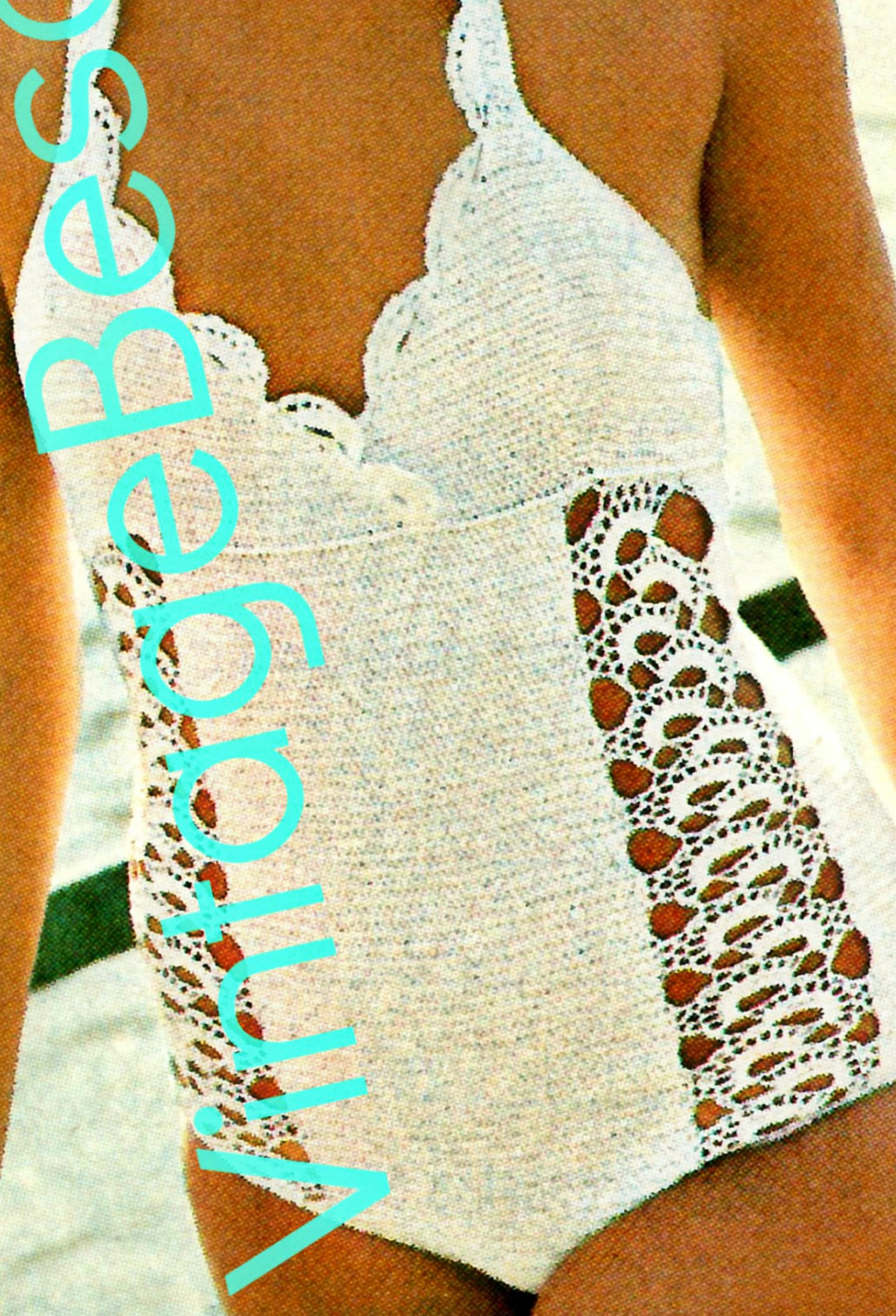 TO MAKE: Retro 1970s Luscious Openwork Maillot - WOW! Super sexy one-piece swimsuit! You better not only have a fabulous body but the confidence to go with it with this ultra-feminine maillot! Can you believe how incredibly gorgeous this is! WOW! Of course you can crochet in any color you desire! --- see pics for pattern info. ---> digitally restored/enhanced is now in EASY TO READ LARGE PRINT.
