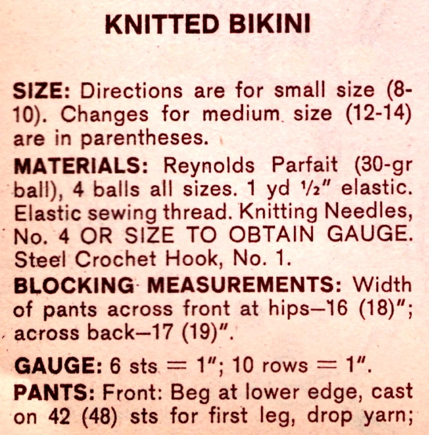 TO MAKE: Retro 1970s Bikini is bra top and boy shorts - This is a knitting pattern for the bikini top and boy short style bottoms. Enjoy! --- see pics for pattern info. ---> digitally restored/enhanced is now in EASY TO READ LARGE PRINT.