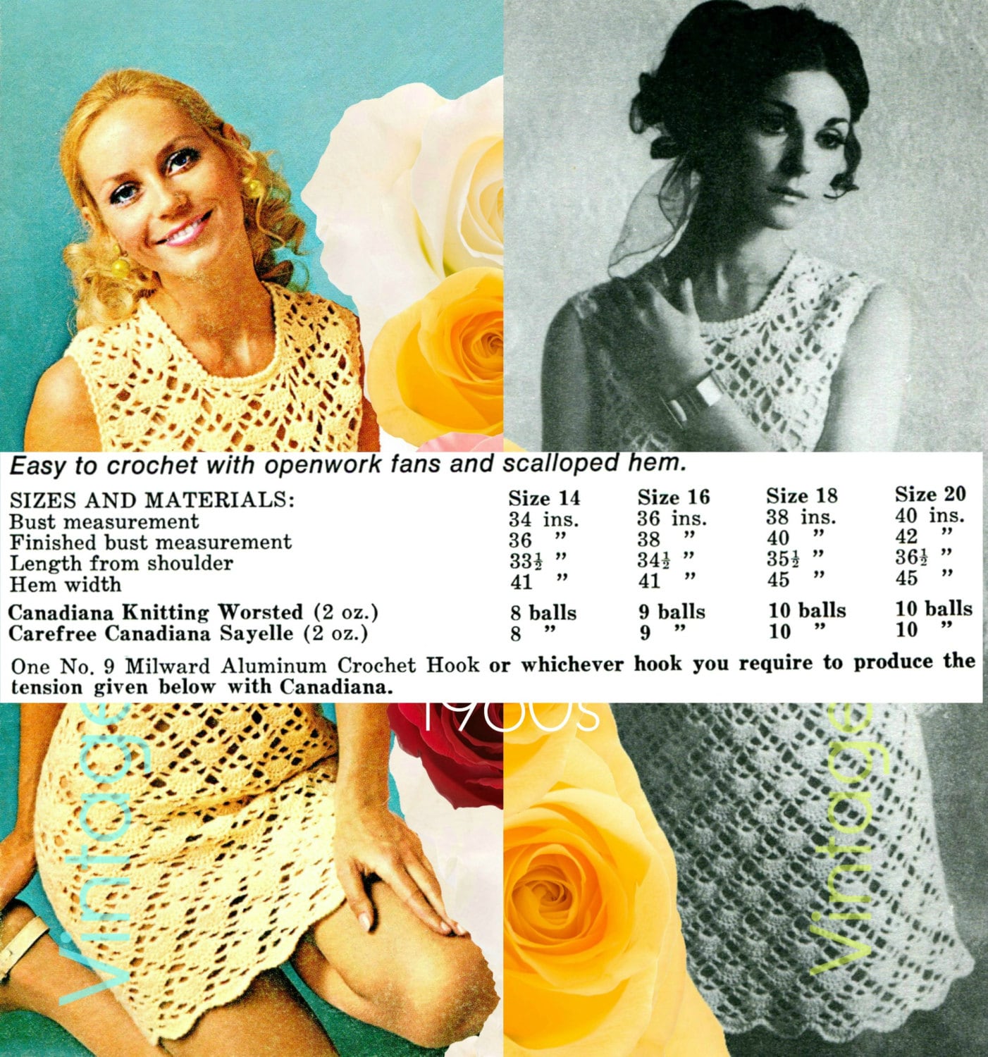 Vintage CROCHET PDF Pattern ❤️ WATERMARKED PATTERN in U.K. terms